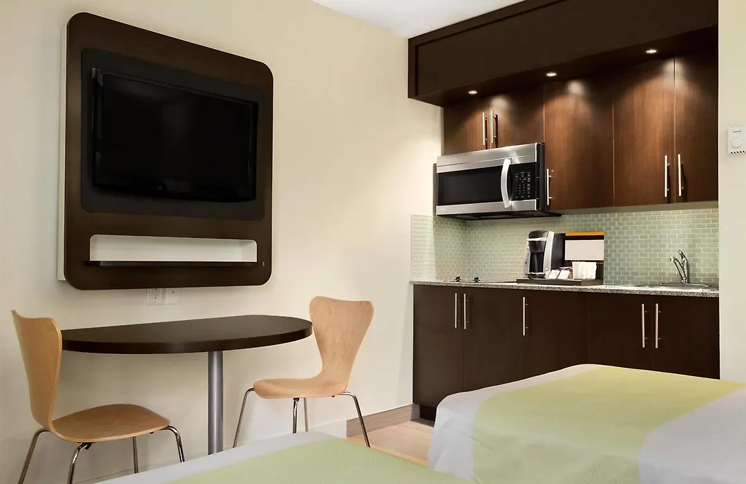 Ognuna delle 77 camere è dotata di un asse e un ferro da stiro e un impianto di climatizzazione, nonché di una TV a schermo piatto con canali satellitari. Sono arredate con finestre insonorizzate e dispongono anche di servizi per la preparazione di tè/caffè. I bagni sono dotati di un bagno con WC separato e una doccia, asciugacapelli e asciugamani. Godi della vista sul lago durante il soggiorno presso l'hotel Studio 6 Downtown Toronto.